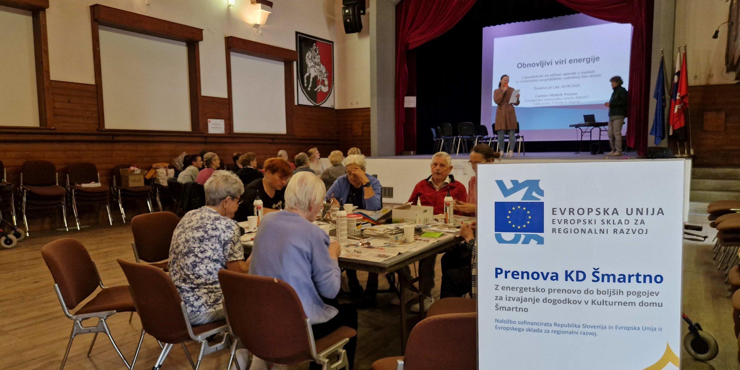 Predmet projekta je investicija Občine Šmartno pri Litiji v prenovo sistema ogrevanja, prezračevanja in hlajenja v Kulturnem domu Šmartno kot osrednjem prireditvenem prostoru v tem urbanem naselju. S tem bodo prebivalci kraja in drugi uporabniki, kot so društva, pridobili sodoben energetsko saniran objekt, v katerem bodo lahko potekali dogodki za razčične uporabnike oz. ciline skupine. LAS Srce Slovenije bo preko izvedbe delavnic za otroke in starejše in objav v lokalnih medijih informiral javnost o načinih energetskih sanacij objektov, obnovljivih virih energije, eko subvencijah oz. pozitivnih vplivih na okolje.